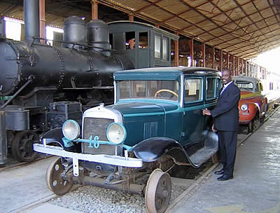 Pablo Abreu junto a un curioso «autocarril» en el Museo