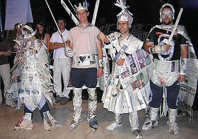Grupos participantes en el curso dictado en la ciudad de Mendoza por Pablo Abreu. La animación consistió en hacer el mejor disfraz con materiales desechables que hay en un hotel, como por ejemplo: diarios viejos. Cada equipo vistió a su modelo -como se puede apreciar en la toma- con mucho ingenio e imaginación.