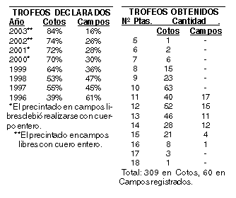 en Cotos y el resto lo hizo en campos registrados, mostrando