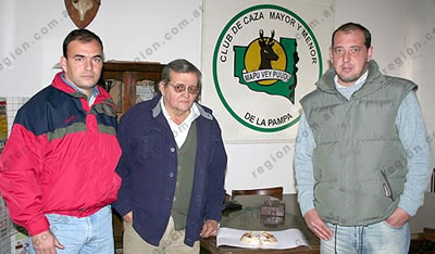 Gustavo Sappa, Rubén «Piqui» Ciaffoni y Leandro Di Nápoli, junto al trofeo logrado en General Acha, Record Argentino. |