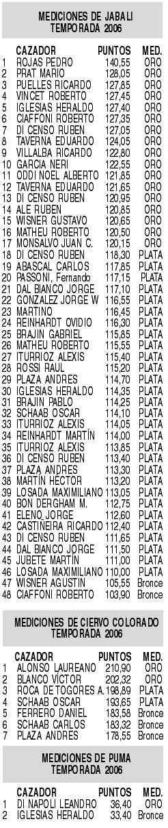 Ver Ranking Pampeano completo en la Web del Club de Caza |