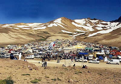 Imagen del 46º Encuentro binacional en el hito de El Pehuenche, realizado en febrero de 2006 donde REGION® estuvo presente.