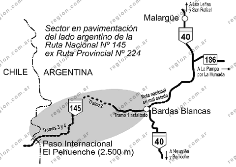 Cuando faltan menos de tres años para que la ruta pavimentada por El Pehuenche sea inaugurada, Argentina va lerda con sus compromisos. El tramo 1 esta terminado, pero el 3 y 4 están en obra y el Tramo 2 que quedó para el último, aún no fue licitado y van recién por el «estudio de factibilidad y proyecto ejecutivo». Será el más complicado de todos, porque allí va la anunciada Presa y Central «Portezuelo del Viento», una obra que no estaba en el proyecto original.