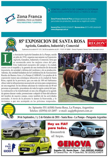 Ya se puso en marcha la “85ª Exposición Agrícola, Ganadera, Industrial, Comercial y de Servicios” que organiza la Asociación Agrícola Ganadera de La Pampa en Santa Rosa, siendo los días centrales de la misma, este fin de semana.