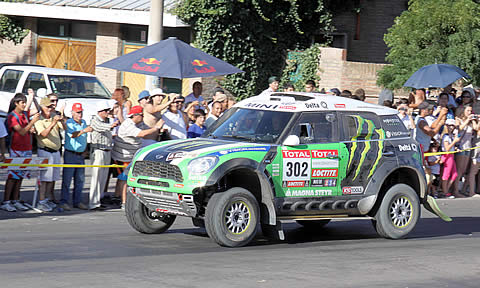 El francés Stephane Peterhansel ganador este año en la categoría autos, con Mini, a su paso por Santa Rosa. Si bien el año próximo el rally no pasará por La Pampa, los entusiastas podrán ver la competencia en provincias vecinas, muy cerca.