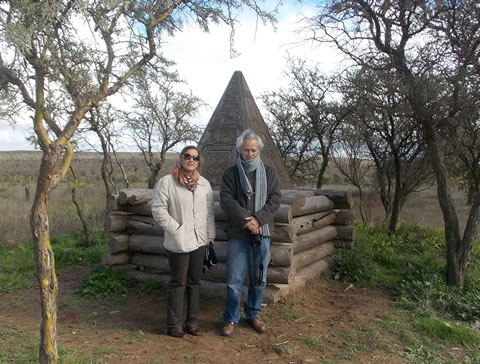 La subsecretaria de Cultura junto al arquitecto Miguel García -quien tuvo a su cargo oportunamente la puesta en valor del sitio-, y el representante del Consejo de Lonkos de la comunidad ranquel, Nazareno Serraino, se dirigieron al lugar a los efectos de observar el estado en general del lugar, y realizar recomendaciones para la conservación del enterratorio del cacique Mariano Rosas y la escultura de las ocho dinastías del pueblo ranquel, ubicada en la zona de ingreso.
