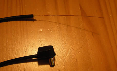 Esta nota no se aplica para quienes ya tengan una antena y decodificador de TDA (Televisión Digital Abierta), sino para quienes hayan comprado un TV LCD con sintonizador digital TDA incorporado y aún no tienen antena. El truco es hacer una "antena TDA casera": compre 2 ó 3 metros de cable coaxil (los metros necesarios para la distancia entre el TV y salir un par de metros por una ventana). El cable coaxil es el que se usa para la TV por cable. En un extremo hay que ponerle una ficha macho (generalmente para los LCD es de pin fino) que va conectada a la entrada "AIR/ANTENNA" del TV y en el otro extremo hay que "pelar" al menos 13 centímetros del cable dejando a la vista solamente el hilo de cobre interior (ver foto).