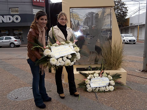 Al pié del monolito, la Unidad Básica, el Centro de Empleados de Comercio y la Unión Obrera de la Construcción colocaron ofrendas florales.