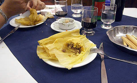 Cazuela de cabrito, tamales, humita en chala y exquisito dulce de cayote al quesillo para el postre, es moneda corriente.