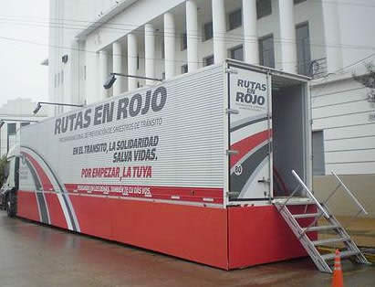 El móvil Rutas en Rojo es un tráiler que recorre el país, dotado de 8 estaciones informatizadas para la aplicación de evaluaciones de capacidad psicofísica y cognitiva. Estos tests se realizan en forma gratuita y tienen como objetivo detectar posibles limitaciones a la hora de conducir.
