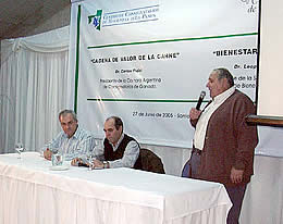 Los encargados de la conferencia fueron los doctores Carlos Pujol, presidente de la Cámara Argentina de Consignatarios de Ganado y Leopoldo Estol, presidente de la Sociedad Americana de Bienestar Animal.