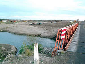 Al atravesar los viejos puentes instalados por el ejército hace 30 años atrás en la zona pampeana de Santa Isabel, rumbo a Mendoza, pueden verse los trabajos viales para la construcción de los puentes licitados que integran este sector de la nueva traza de la Ruta Nacional Nº 143, que forma parte del Corredor Bioceánico por el Paso El Pehuenche.