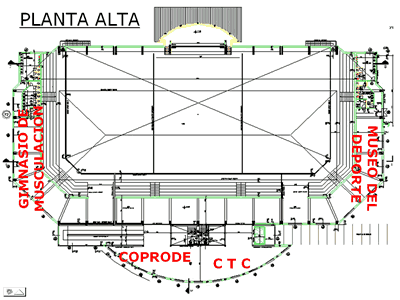 En la planta alta estarán debajo de las tribunas los gimnasios de musculación, museo de deportes, COPRODE y Centro deportivo Comunitario.