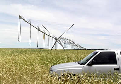 Notable progreso puede verse en los círculos sembrados con centeno de más de un metro de alto, allí donde hace pocos meses el desierto pampeano sólo ofrecía arena, piedras y yuyos.