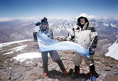 El día de gloria lo iniciaron a las 6 horas haciendo cumbre a las 13,05 horas, con 70 kilos de equipaje a cuestas este logro les demandó 9 días, mucha energía y una estadía de solamente 15 minutos en lo más alto de América, tan sólo unos minutos para desplegar nuestro emblema celeste y blanco y dejar plasmado en fotos ese momento tan emocionante y sublime.