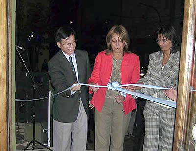 Corte de cintas en la inauguración. Presidió el acto la vicegobernadora Norma Durango, acompañada por la subsecretaria de Cultura Adriana Maggio; ambas junto al representante de la Oficina Comercial y Cultural de Taipei, Jaime Chuang. |