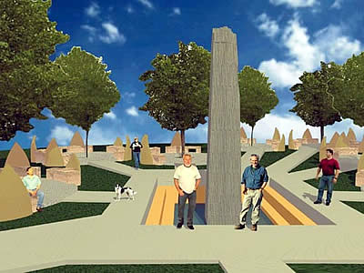 El Arq. Miguel García y el escultor Raúl Fernández Olivi junto a otros colaboradores, desarrollaron la idea del emplazamiento de un monumento en el Parque Don Tomás, donde ya hoy se encuentra una placa recordatoria y se la presentaron al municipio.
