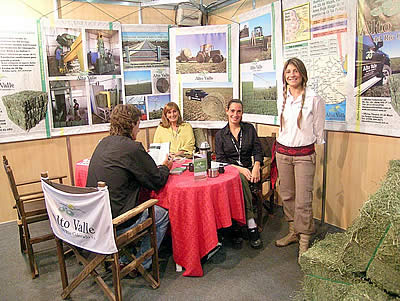 El stand de «Alto Valle del Río Colorado SA» comandado por Eloy Bauzas, se dedicó a promocionar las bondades de su producto «Fardos Pampeanos de alta compactación», producidos en 25 de Mayo, en el Area Bajo Riego de La Pampa, premiados el año pasado en el II Concurso Nacional de Forrajes Conservados -Mercoláctea 2005- y que ahora obtuviera el mérito de ser la empresa proveedora oficial de la Muestra en esta 2da Exposición Internacional Equina y de Industria Hípica.
