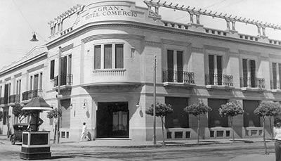 Santa Rosa. Década de 1940. Hotel Comercio. Edición Casa Villares. Fotografía: Casa Maqueira. Donación de la familia de Honorio Romero. En la actualidad funcionan dependencias del BLP pero se mantiene bien conservado. |