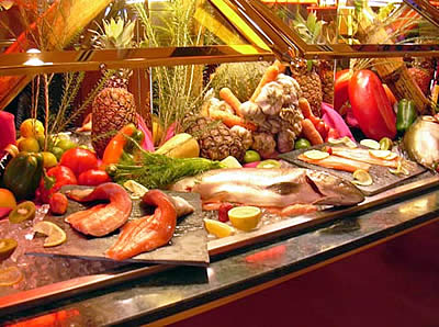 • Mousseline de papa: Pure de papas 100 grs., manteca clarificada 40 grs., manzana verde 50 grs. hinojo 20 grs., echalot 20 grs. Sudar el echalot, la manteca, la manzana y el hinojo. Agregar el puré salteado y montar con manteca.