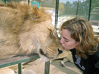 (Foto de archivo: María Victoria con cachorro de león) |