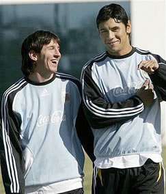 entrenamientos. Son los dos más jovenes del equipo, Messi cumplió los 19 recientemente y Ustari los cumple este lunes 3 de julio.
