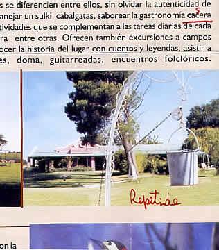 3. 1 Bajo el subtítulo LA PAMPA Y SUS ESTANCIAS, sin mediar explicación se incluyen dos fotografías de un mismo establecimiento turístico, sobre diez que componen la red. Y para más, una de esas dos fotografías, se repite en el dorso del impreso, al lado del mapa.