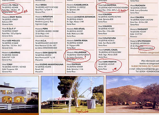 5. 3 El HOTEL LA CAMPIÑA no indica localidad, sólo por contexto un turista -que obviamente desconoce nuestro ámbito- podría deducir que pertenece a Santa Rosa.