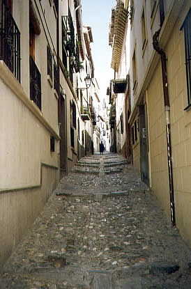 La Acrópolis, de confluencia fluvial, facilitó la defensa, a la ciudad Romana y a la Musulmana. La misma cuenta con calles estrechas y retorcidas. La escasez de huecos externos, las altas tapias y la abundancia de patios, huertas, etc., recuerdan la ascendencia medieval y sobretodo musulmana. No faltan trazados más geométricos de la Era Cristiana y algunas calles y Avenidas con elevadas edificaciones, propias de una ciudad Moderna, como la Gran Vía o la Av. de los Reyes Católicos. No obstante el primer núcleo urbano fue el "Garnatha Alyejud", habitado acaso por judíos, hoy día, se diferencian 3 barrios característicos: el Musulmán, el Cristiano y el Moderno. Verdadero Museo Histórico y Artístico, descuella la Alhambra, construida sobre una colina que domina el curso del Genil. Los Jardines del Partal y del Generalife (belleza ornamental, antigua residencia de los reyes granadinos), la suntuosidad de las fuentes, la gracia de los famosos patios (Leones, Arrayanes) y de sus salas (Tocador de la Reina, Tribunal, 2 Hermanas, etc.), el Palacio de Carlos I , los baños y la elegancia de las balconadas y minaretes, la convierten en una maravilla arquitectónica que ha sabido condensar el arte y civilización árabe-hispano. Sugiero hacer cola desde muy temprano, para poder entrar a la residencia amurallada, porque junto con el Louvre es uno de los lugares, más visitados de Europa y en cuyas vías de acceso, mujeres de la raza calé, pretenderán presagiarle el futuro o venderle alguna flor.