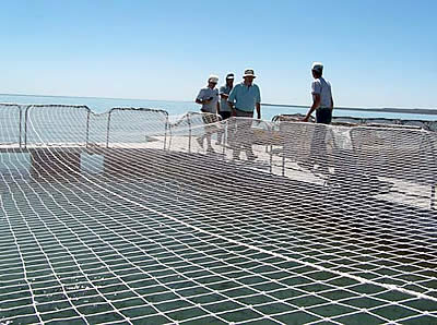 El preciado pez es rutinariamente alimentada con balanceado tipo “pellet” compuesto por harinas, que se fabrica en un molino de General Pico y que mediante un pequeño motor y una manguera terminal, se lo impulsa a las jaulas de ocho metros de profundidad (siete de ellos sumergidos), generando una verdadera “revuelta” de los miles de peces en su afán por hacerse de la comida.