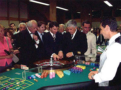 El intendente Alejandro Dichiara, sacó “negro el 17”, número popular si los hay a la hora de apostar en el paño de la ruleta de la mesa 1, el pasado viernes 22 en el acto de lanzamiento de la primera bola de la temporada 2006/07 del Casino Monte Hermoso. |