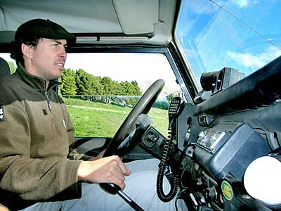 Santiago Díaz de «Eco Ventania Turismo» a bordo de su Land Rover Defender. Hace más de 10 años que recorre estos caminos sumando diversión y adrenalina extra a los turistas.