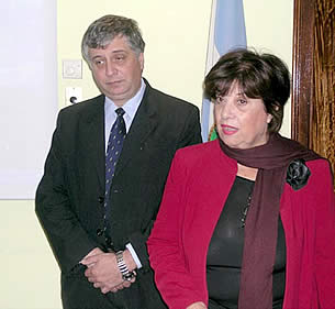 La subsecretaria de Turismo, Carmen Bertone, acompañada por el ministro de la Producción, Ricardo Moralejo, durante la presentación realizada en el Centro Cívico. |
