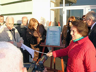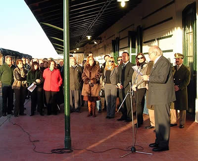 Instante en que se descubre la placa declarando al lugar «Patrimonio de los Santarroseños». La misma, con la firma del intendente Alcala dice: «Edificio de la Estación de Trenes recuperado para la comunidad».