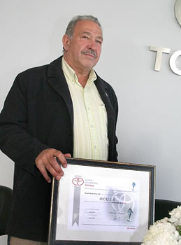 Juan Bresso y el Diploma que da validez a la Certificación alcanzada por el concesionario Toyota BHAS S.A. |