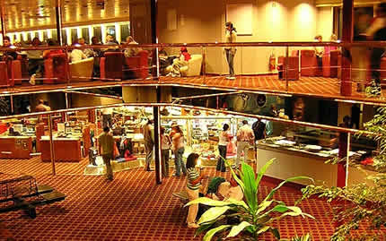 Interior del barco Eladia Isabel, con la que Buquebús hace sus salidas turísticas a Colonia. Lujo y comodidad se conjugan. |
