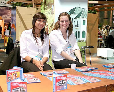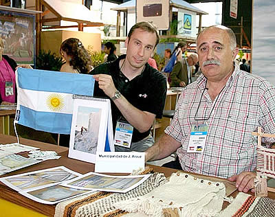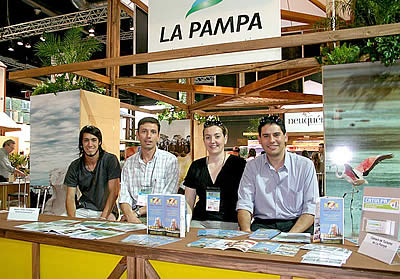 Integrantes de la Asociación Empresaria Hotelera Gastronómica de La Pampa y de la Cámara de Turismo provincial en el stand pampeano en la FIT 2007.