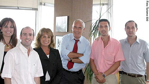 El 27 de febrero se realizará el lanzamiento oficial de la «Brama 2008» en la Sectur y el 29 en la Reserva Parque Luro, coincidiendo con el traspaso de la presidencia del Ente Oficial Patagonia Turística (integrado por los organismos oficiales de Turismo de las Provincias de La Pampa, Neuquén, Río Negro, Chubut, Santa Cruz y Tierra del Fuego), a la Provincia de La Pampa, con la concurrencia de los secretarios de turismo de las provincias patagónicas. Foto: visita de Amsé y colaboradores al secretario de Turismo de la Nación, Enrique Meyer. |
