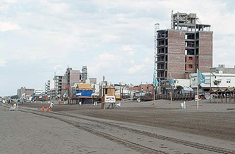 Desde la playa se observa el buen ritmo de construcción de numerosos edificios de departamentos sobre Avenida Costanera y se funden además los cimientos de un emprendimiento hotelero cuatro estrellas (ver REGION® 742).