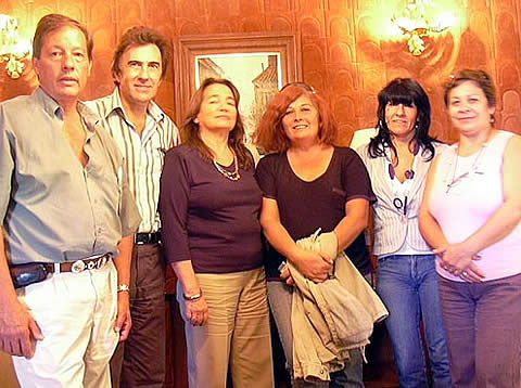 Lorences, Fernández Zamponi, Nemesio y Canuhé, de CaTuLPa, junto a Gloria Cazenave y Laura Ochoa de la Municipalidad de Victorica.