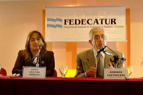 El presidente de FedeCaTur, Domingo Castracane y la secretaria de la federación nacional, la pampeana María Cristina Nemesio, fueron los encargados de realizar la apertura del 2º Foro de Empresarios Turísticos. |