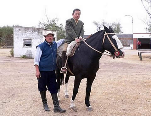 Enmarcado en el plan de promoción turística de Patagonia en el Japón, que viene desarrollando el Ente Patagonia Argentina, en conjunto con JICA, el representante de esta entidad, Katsumi Ono, recorrió la provincia de La Pampa, relevando los principales atractivos de la zona. La foto corresponde a una salida de cabalgata junto a Carlos Lorences, titular de la Estancia Turística «San Carlos», de la localidad de Luan Toro. |
