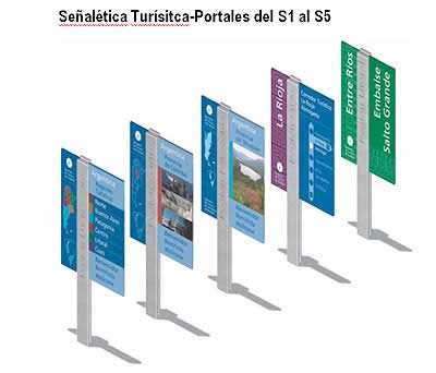 Comprende 16 tipologías distintas de señales, siendo las primeras cinco las de mayor tamaño (portales) y las que indican los ingresos al país, a las regiones, a las provincias y a los corredores turísticos. Tras este compromiso comenzará la instalación de más de 230 señales del tipo S1 a S5 (portales) en todo el territorio nacional, lo que demandará una inversión de 19 millones de pesos en las seis regiones turísticas del país.