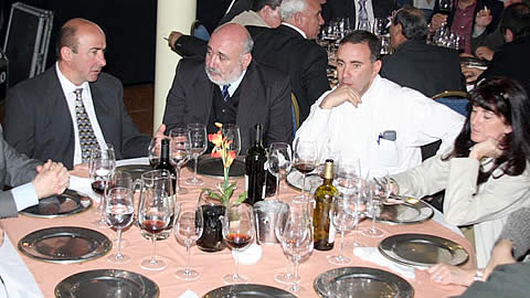 El presidente de la AAGLP, Andrés Souto, en el mensaje de apertura junto a toda la dirigencia oficial. Gran cantidad de carteles con reclamos del sector, rodearon toda la pista central de la expo. |