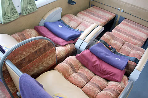 El servicio exclusivo «Suite» -por muchos imitado pero por ninguno igualado-, dispone de coches para solamente 25 pasajeros, con asientos que son verdaderas camas de una plaza de 1,90 x 0,65 m. |