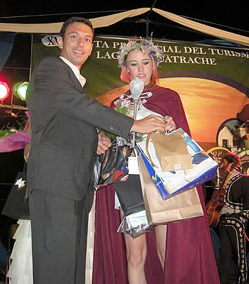 El subsecretario de Turismo, Santiago Amsé, entregando varios presentes a la flamante Reina del Turismo 2009, en el momento de la coronación.
