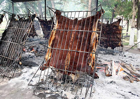El almuerzo del domingo será asado con cuero y costillares. Una especialidad destacada de la cocina rural que ha distinguido los Encuentros de Quemú. |