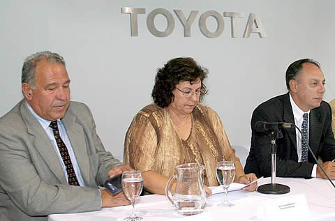 Juan Bresso, vicepresidente y Aurora del Carmen Velez de Bresso, presidente de BHAS SA, junto a Aníbal Borderes, presidente de Toyota Argentina SA.