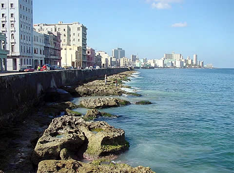 Mientras tanto el Malecón es el centro estratégico de La Habana, el Malecón es un punto de orientación ideal. Flanquea todo el barrio del Vedado y del Centro, hasta la Habana Vieja. El Malecón tiene 5 km de longitud, del Castillo de la Punta, a la Chorrera.