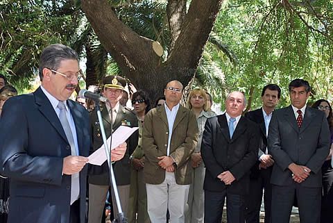 Una comitiva especial integrada por el ingeniero Tebes, la secretaria de Desarrollo Social, María Victoria Alvarez, y los concejales Patricia Testa, Jorge Gaitán, Gabriela Pregno y Silvia Ramos depositó una ofrenda floral al pié del monumento que recuerda al general Eduardo Pico.